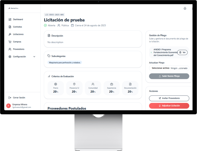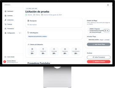 Un dashboard integral te permite supervisar cada licitación, cada proveedor y cada contrato en tiempo real.