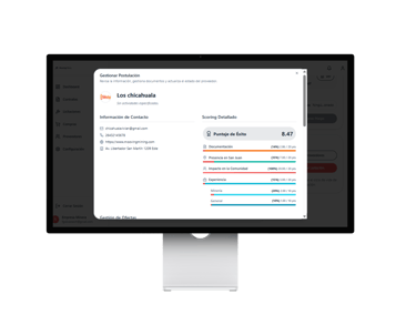 Nuestro sistema de scoring dinámico y verificaciones de proveedores asegura que tus decisiones se basen en datos objetivos y confiables.