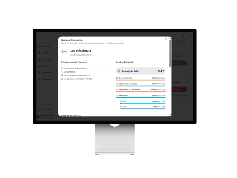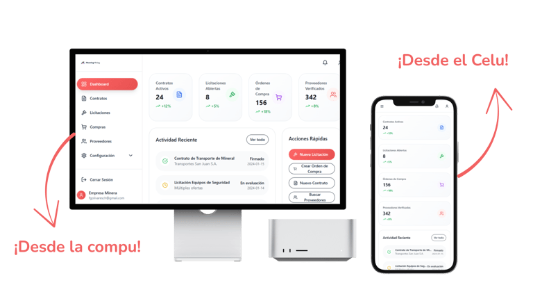 Desde la búsqueda del proveedor ideal hasta la gestión de contratos, Mooving Mining centraliza y simplifica cada proceso de tu cadena de valor. Con transparencia, eficiencia y control total.